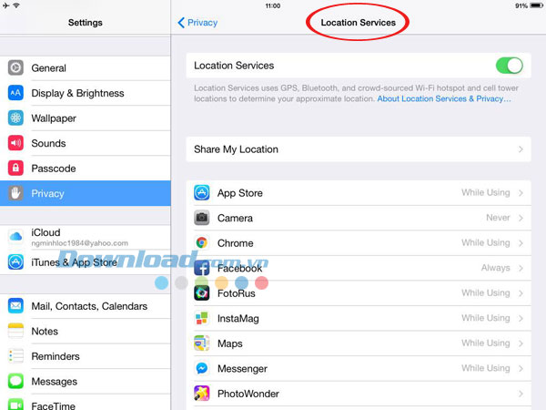 Truy cập Settings > Privacy > Location Services > trượt sang vị trí Off màu trắng.