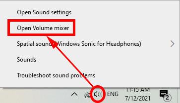 Đầu tiên các bạn nhấn chuột phải vào biểu tượng âm thanh ở góc dưới bên phải màn hình sau đó chọn Open Volume mixer.
