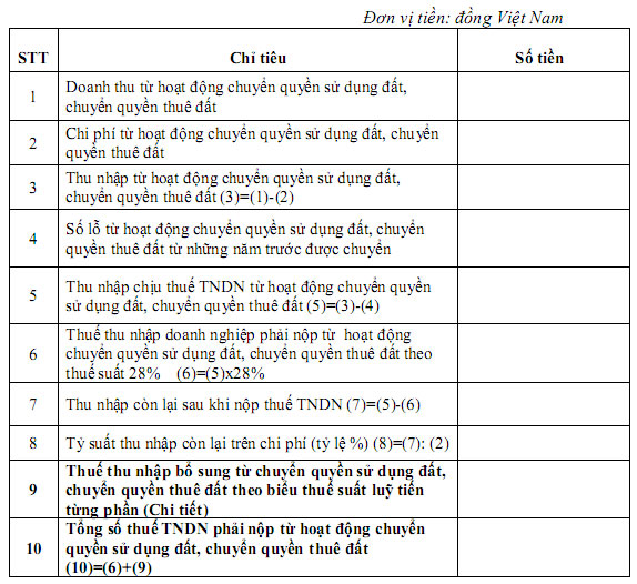 Kèm theo Tờ khai quyết toán thuế TNDN năm ....