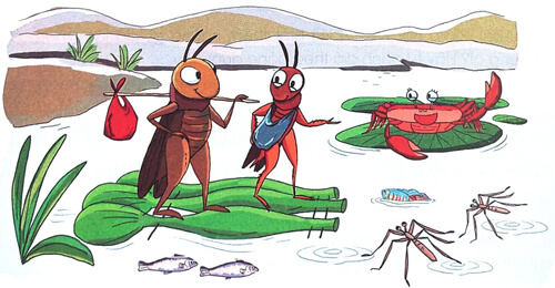 2. Mùa thu mới chớm nhưng nước đã trong vắt, trông thấy cả hòn cuội trắng tinh nằm dưới đáy. Nhìn hai bên bờ sông, cỏ cây và những làng gần, núi xa luôn luôn mới. Những anh gọng vó đen sạm, gầy và cao, nghênh cặp chân gọng vó đứng trên bãi lầy bái phục nhìn theo chúng tôi. Những ả cua kềnh cũng giương đôi mắt lồi, âu yếm ngó theo. Đàn săn sắt và cá thầu dầu thoáng gặp đâu cũng lăng xăng cố bơi theo chiếc bè, hoan nghênh váng cả mặt nước.
