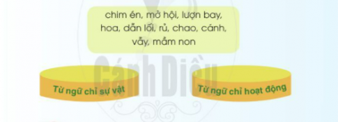- Từ ngữ chỉ sự vật: chim én, hoa, cánh, mầm non.