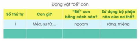 • Mèo, sư tử,... bế con bằng cách ngoạm dùng miệng và răng của chúng.