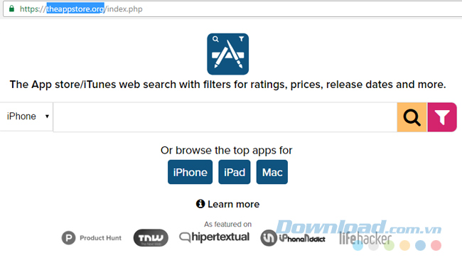 "theappstore.org" là một trang web chuyên phục vụ cho việc tra cứu các ứng dụng của hệ điều hành iOS. Địa chỉ này được đánh giá khá cao về sự tiện dụng của các bộ lọc, tính linh hoạt và chất lượng tìm kiếm. Thêm vào đó, giao diện của "theappstore.org" cũng cực kỳ đơn giản, thân thiện và rất dễ sử dụng.