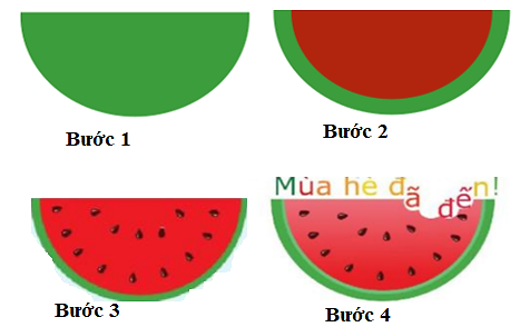 Em hãy mở lại hình miếng dưa hấu đã vẽ ở bài trước và thêm chi tiết để được hình như Hình 14.17.