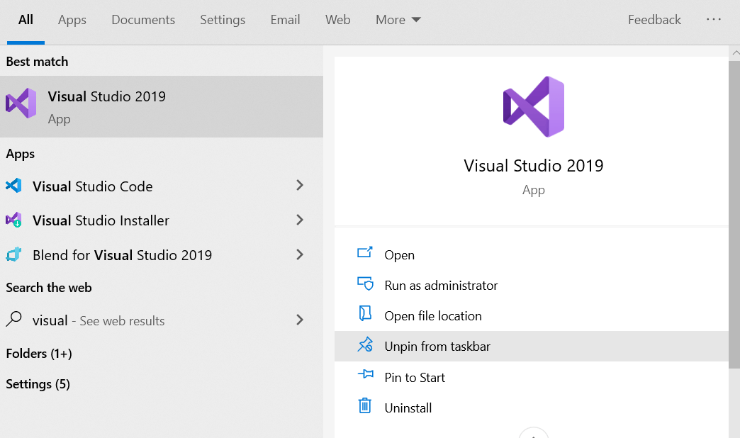 2) Tìm kiếm ứng dụng trong cửa sổ tìm kiếm, sau đó chọn Unpin to taskbar