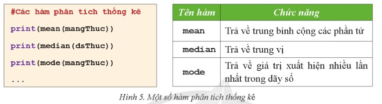 Hoạt động 2 trang 93: Em hãy khám phá hàm gộp và hàm phần tích thống kê (tham khảo hình 5). Thử áp dụng từng hàm với mảng và với danh sách rồi quan sát kết quả.