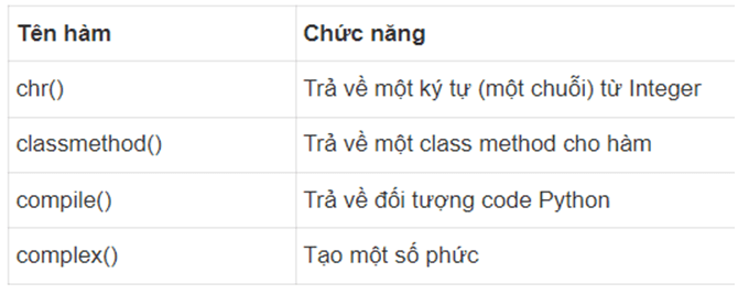 Hãy kể tên một hàm Python áp dụng cho danh sách nhưng không áp dụng cho mảng.