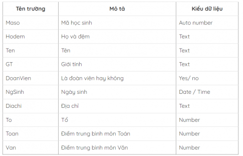 Học sinh là trung tâm của hoạt động giáo dục trong nhà trường. Em hãy thiết kế bảng dữ liệu học sinh cho CSDL của trường em.