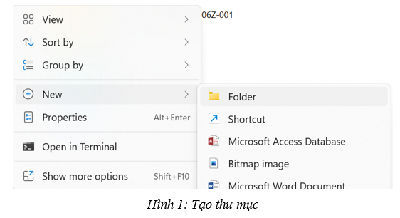 Bước 3. Nháy chuột phải chọn New sau đó chọn Folder. (Hình 1)