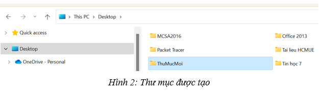 Tạo thư mục mới tên là ThuMucMoi trên màn hình nền Desktop và thư mục ThuMucTam nằm trong thư mục Documents.