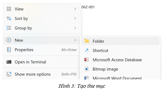 Bước 3. Nháy chuột phải chọn New sau đó chọn Folder. (Hình 3)