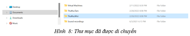 Nhiệm vụ 2. Di chuyển ThuMucMoi thành thư mục con của Documents.