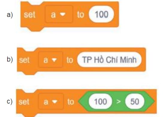 Trong Scratch, một biến có thể nhận dữ liệu kiểu số, kiểu chữ và kiểu logic.