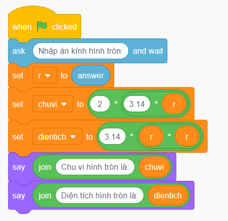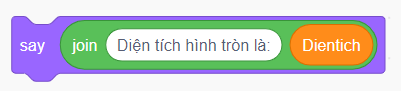 Thêm lệnh thông báo diện tích hình tròn: