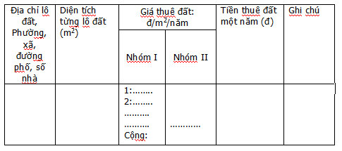 NỘP TIỀN THUÊ MẶT ĐẤT, MẶT NƯỚC