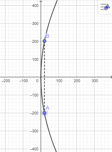 b. Nếu 1 đơn vị đo trong mặt phẳng tọa độ tương ứng 1 km trên thực tế thì tọa độ các điềm là: A(0,02; -0,2) và B(0,02; 0,2) thuộc vào parabol có dạng y2 = 2px