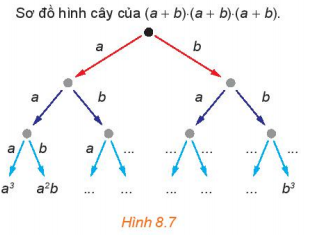 Hãy cho biết các đơn thức còn thiếu (...) trong sơ đồ hình cây (H.8.7) của tích (a +b).(a +b).(a +b)