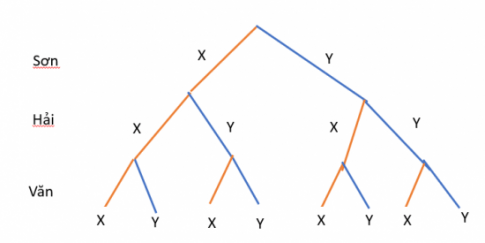 Trên một phố có hai quán ăn X, Y. Ba bạn Sơn, Hải, Văn mỗi người chọn ngẫu nhiên một quán ăn.