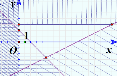 Lấy phần bên phải trục Oy và bên dưới đường thẳng y=3