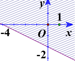 \(x + 2y \le - 4 \Leftrightarrow 0 + 2.0 \le - 4\) (Vô lí)