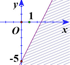 \(y \ge 2x - 5 \Leftrightarrow 0 \ge 2.0 - 5\) (Luôn đúng)