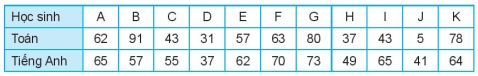 Điểm Toán và điểm Tiếng Anh của 11 học sinh lớp 10 được cho trong bảng sau:
