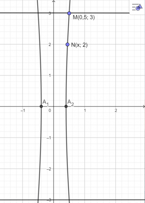 a. Tìm các giao điểm A1, A2 của hypebol với trục hoành (hoành độ của A1 nhỏ hơn của A2).