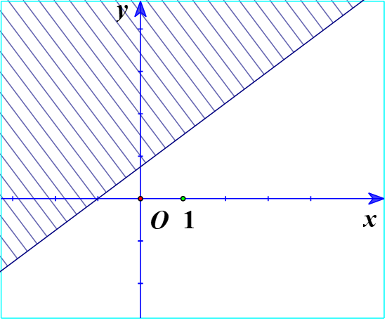 Vậy miền nghiệm của bất phương trình (1) là nửa mặt phẳng bên dưới đường thẳng