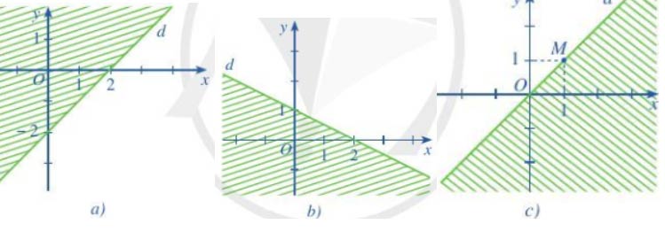 Phần không gạch (không kể d) ở mỗi Hình 7a, 7b, 7c là miền nghiệm của bất phương trình nào?