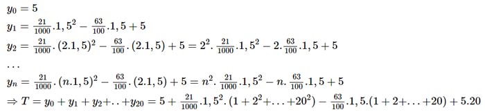 \Rightarrow T = 5 + \frac{{21}}{{1000}}.1,{5^2}.2870 - \frac{{63}}{{100}}.1,5.210 + 5.20 \approx 42,16(m)\(\Rightarrow T = 5 + \frac{{21}}{{1000}}.1,{5^2}.2870 - \frac{{63}}{{100}}.1,5.210 + 5.20 \approx 42,16(m)\)