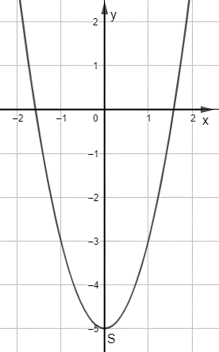 + Có đỉnh S với hoành độ: {x_S} = \frac{{ - b}}{{2a}} = \frac{{ - 0}}{{2.2}} = 0;{y_S} = {2.0^2} - 5 = - 5.\({x_S} = \frac{{ - b}}{{2a}} = \frac{{ - 0}}{{2.2}} = 0;{y_S} = {2.0^2} - 5 = - 5.\)