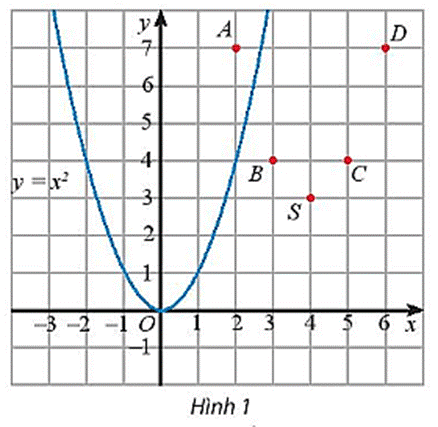 Hãy vẽ đường cong đi qua các điểm A, B, S, C, D và nêu nhận xét về hình dạng của đường cong này so với đồ thị của hàm số y = x2 trên Hình 1.