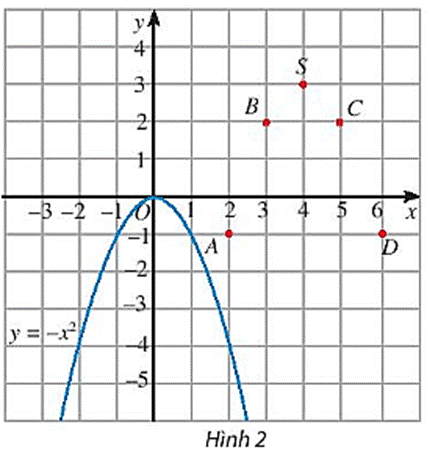 Hãy vẽ đường cong đi qua các điểm A, B, S, C, D và nêu nhận xét về hình dạng của đường cong này so với đồ thị hàm số y = - x2 trên Hình 2.