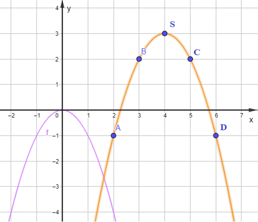 - Có đỉnh là điểm S với hoành độ là 4 và tung độ là 3.