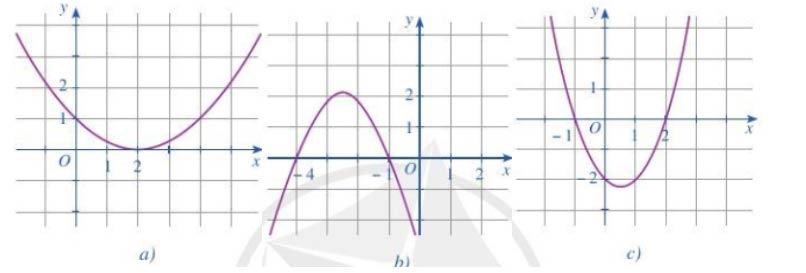 Tìm nghiệm và lập bảng xét dấu của tam thức bậc hai f\left( x \right) với đồ thị được cho ở mỗi Hình 224a, 24b, 24c.