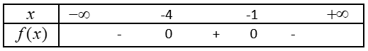 => Phương trình f\left( x \right) = 0\(f\left( x \right) = 0\) có 2 nghiệm phân biệt x = - 4,x = - 1