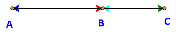 Cho A, B, C là ba điểm thẳng hàng, B nằm giữa A và C. Viết các cặp vectơ cùng hướng, ngược hướng trong những vectơ sau: