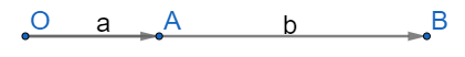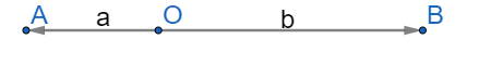 Cho ba điểm O, A, B thẳng hàng và OA=a, OB=b. Tính tích vô hướng