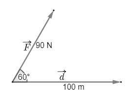 \(A = \overrightarrow F .\overrightarrow d = \left| {\overrightarrow F } \right|.\left| {\overrightarrow d } \right|.\cos \left( {\overrightarrow F ,\overrightarrow d } \right) = 90.100.\cos 60^\circ = 4500 (J)\)
