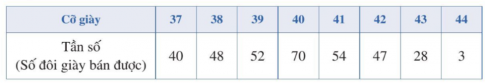 Số đôi giày bán ra trong Quý IV năm 2020 của một cửa hàng được thống kê trong bảng tần số sau: