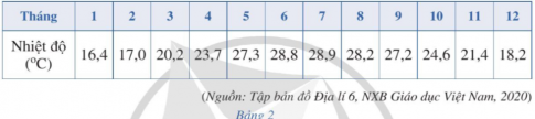 Bảng 2 cho biết nhiệt độ trung bình các tháng trong năm ở Hà Nội.