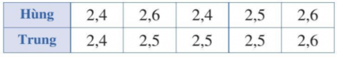 Trong 5 lần nhảy xa, hai bạn Hùng và Trung có kết quả (đơn vị: mét) lần lượt là