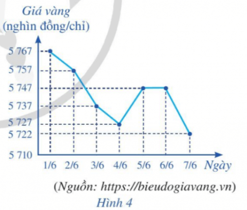 Biểu đồ đoạn thẳng ở Hình 4 biểu diễn giá vàng bán ra trong bảy ngày đầu tiên của tháng 6 năm 2021.