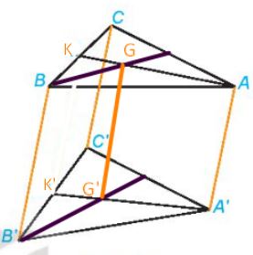 Vì G là trọng tâm tam giác ABC nên A, G, K thẳng hàng theo thứ tự đó và AG = 2GK. Do vậy A, G', K' thẳng hàng theo thứ tự đó và A'G' = 2G'K', tức G là trọng tâm tam giác A'B'C'