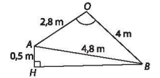 \cos \widehat {AOB} = \frac{{O{A^2} + O{B^2} - A{B^2}}}{{2OA.OB}} = \frac{{2,{8^2} + {4^2} - 4,{8^2}}}{{2.2,8.4}} = \frac{1}{{28}} \Rightarrow \widehat {AOB} \approx {88^0}\(\cos \widehat {AOB} = \frac{{O{A^2} + O{B^2} - A{B^2}}}{{2OA.OB}} = \frac{{2,{8^2} + {4^2} - 4,{8^2}}}{{2.2,8.4}} = \frac{1}{{28}} \Rightarrow \widehat {AOB} \approx {88^0}\)