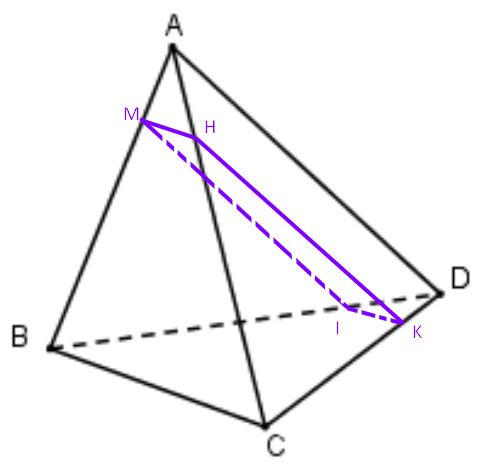 b) Ta có: (P) ∩ (ABD) = MI, (ABD) ∩ (ACD) = AD, (P) ∩ (ACD) = HK, MI // AD suy ra HK // MI