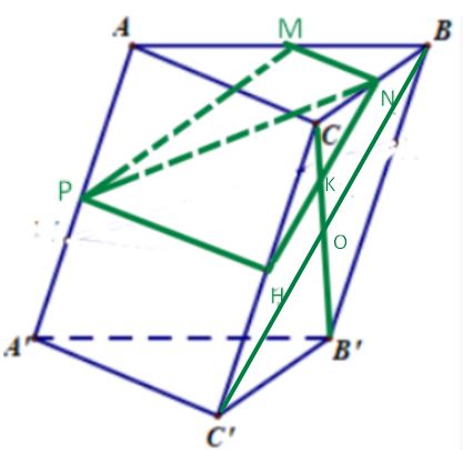 Cho hình lăng trụ tam giác ABC⋅A′B′C′. Gọi M,N,P lần lượt là trung điểm của các cạnh AB,BC và AA′.
