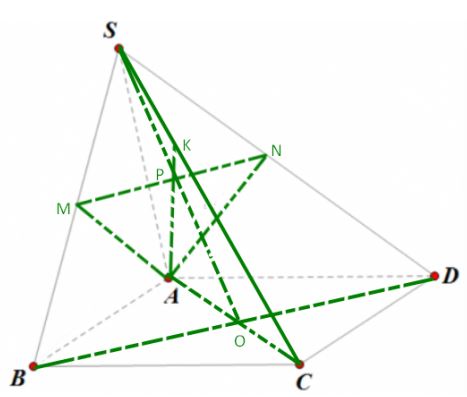Ta có MN là đường trung bình tam giác SBD suy ra S, P, O thẳng hàng và P là trung điểm của SO