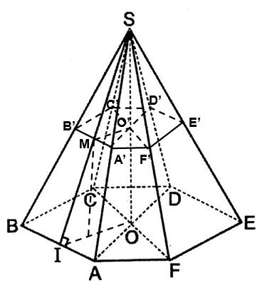 Cho hình chóp cụt lục giác đều ABCDEF.A'B'C'D'E'F' với O và O' là tâm hai đáy, cạnh đáy lớn và đáy nhỏ lần lượt là a và \frac{a}{2}\(\frac{a}{2}\), OO' = a