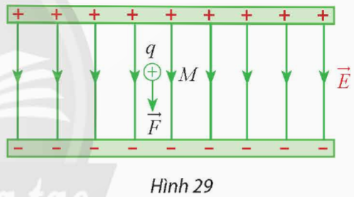 \(\overrightarrow{E\ }\) là cường độ điện trường (đơn vị: N/C). Tính độ lớn của lực tĩnh điện tác dụng lên điện tích điểm khi q = 10- 9 C và độ lớn điện trường E = 105 N/C (Hình 29).